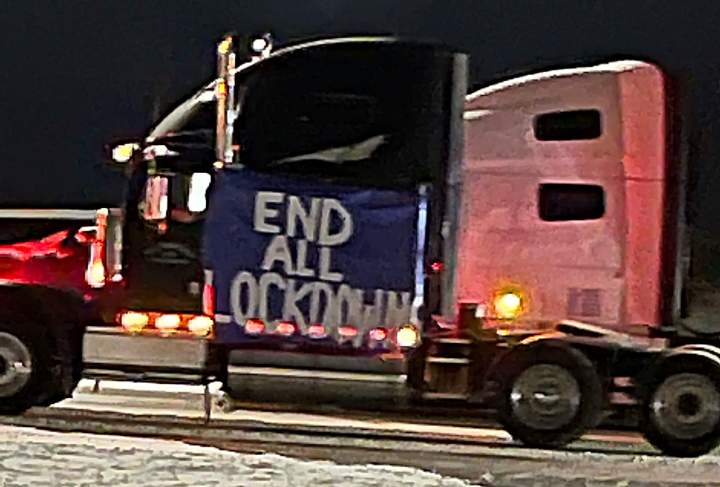 Truckers protest the vaccine mandate at Manitoba-US border -
