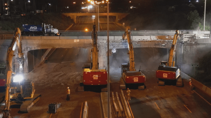 Crews work through the night to tear down part of Oshawa’s Simcoe Street bridgeCrews work through Saturday night to partially tear down Simcoe Street Bridge. The project is part of a provincial plan to widen the shoulders and repave Highway 401 in the area.TrafficJul 24, 2023