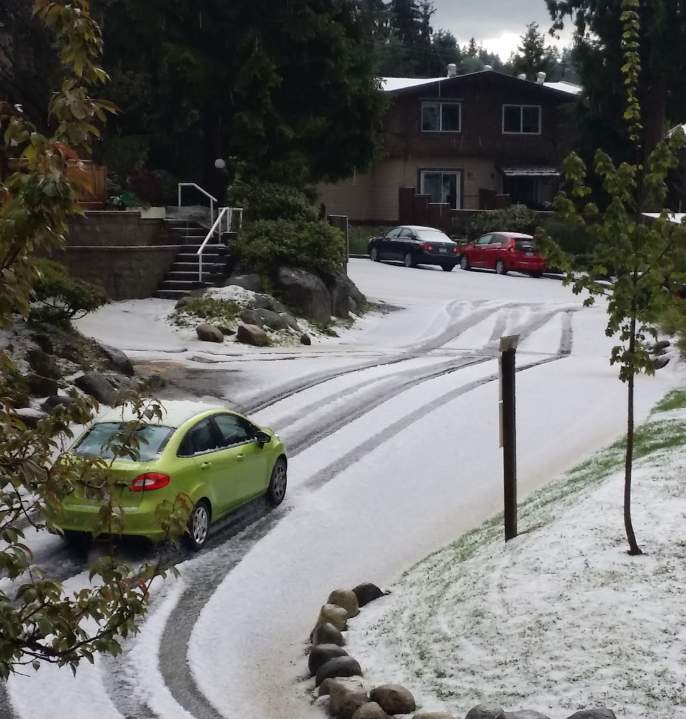 Freak spring hailstorm blankets Metro Vancouver in ‘snow’Some streets in Port Moody were buried under inches of hail Friday afternoon.WeatherMay 12, 2017