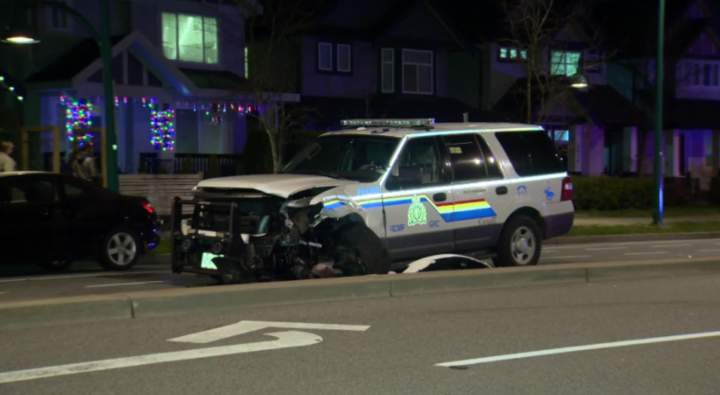 Multi-vehicle collision involving Vancouver police cruiser sends several to hospitalA multi-vehicle collision near West Broadway and Burrard St. involved a VPD cruiser on its way to a domestic assault in progress, police said.CanadaDec 18, 2020