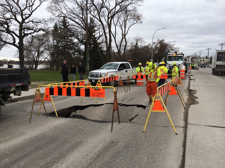 Sinkhole shuts down southbound St. Mary’s RoadThe southbound lanes of a St. Mary's Road shut down just before 3 p.m. Wednesday after a portion of the street caved in near Guay Park and Morier Avenue.May 14, 2014