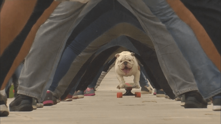 Skateboarding bulldog and a man running on all fours among new Guinness World Record holdersA bulldog skateboarding through a human tunnel, a blindfolded Harlem Globetrotter and a Japanese man running on all fours were just a few to join the Guinness World Records.ScienceNov 12, 2015