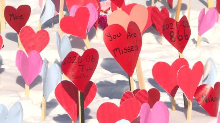 Memorial of hearts along Assiniboine River trail honours Manitoba lives lost to COVID-19"Remember everyone who has been lost, whether their names are known to us or not."CanadaFeb 21, 2021