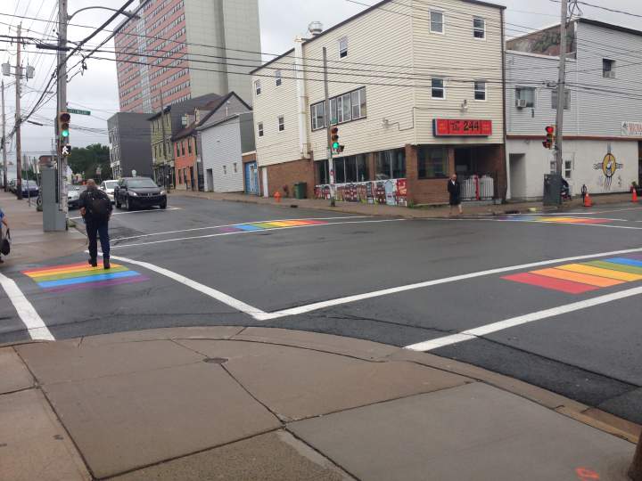 Halifax launches rainbow crosswalk pilot projectSidewalks at four intersections in the Halifax area are being painted with a rainbow design ahead of Pride week in the city.CanadaJul 6, 2016