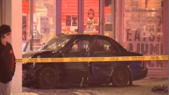 Car crashes into Surrey storefront, hits cyclist near City HallSurrey RCMP are investigating after a car hit a cyclist, then crashed into a storefront near City Hall Saturday nighNov 22, 2020