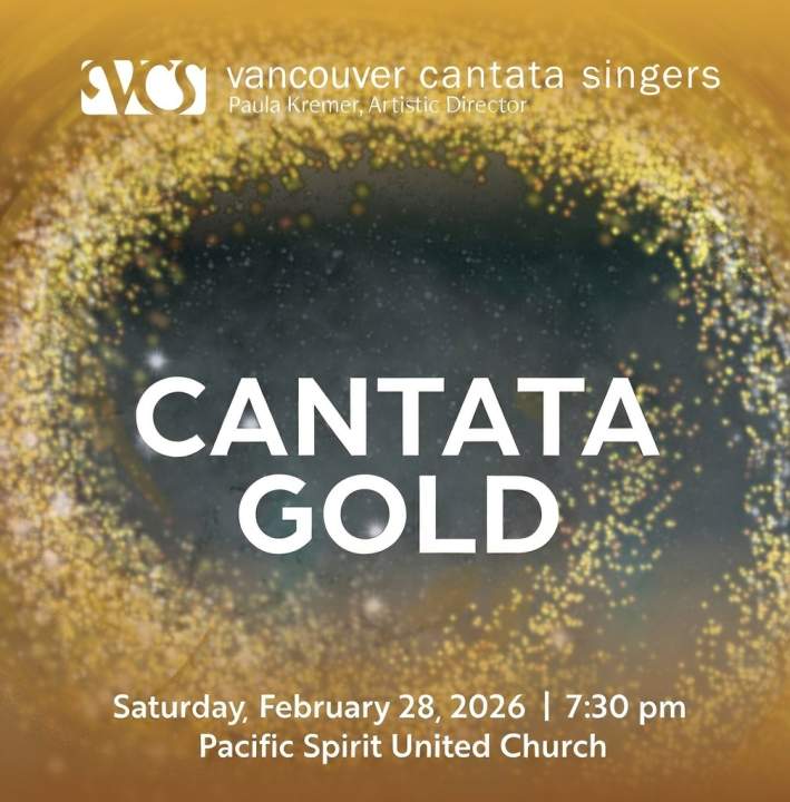 Vancouver Cantata Singers present Cantata GoldWhile not ABBA’s greatest hits, nor a buffet of Bach’s greatest cantatas, this concert does indeed promise a golden selection of handpicked works from a list of the choir’s programmes since the winter of 2012. Call it our ‘greatest hits’ or call it what we love to sing! Come and enjoy an evening of celebration...MusicFeb 28