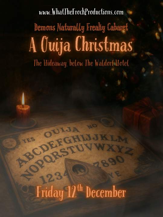 Demons Naturally Freaky Cabaret: A Ouija ChristmasDee Monstratives Legacy Cabaret – be careful what you wish for this Christmas. A creepy seasonal tale where a Ouija session on Christmas opens a doorway, blending cozy holiday cheer with unsettling supernatural chills. Get ready for a night of freaky, sexy, scary performances and a whole lot of fun. This night of Drag, Burlesque...OtherDec 12