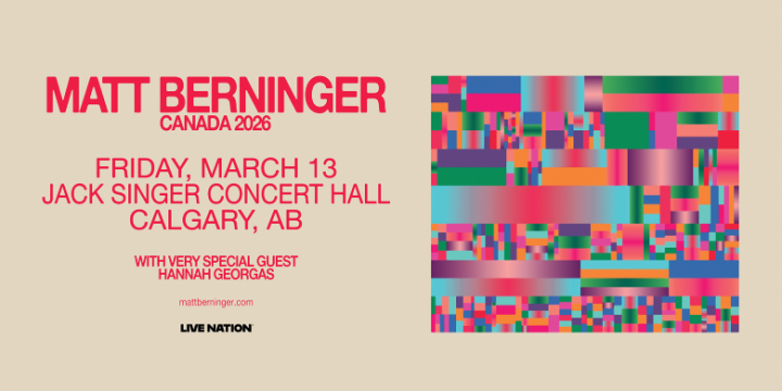 QR Calgary: Matt Berninger – Enter to Win!Matt Berninger from The National is coming to the Jack Singer Concert Hall with special guest Hannah Georgas on March 13, 2026. Enter here for your chance to win your way!ContestEnter by Sun, Jan 11, 2026 9:55pm MT