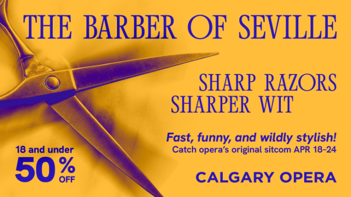 QR Calgary: Calgary Opera Presents The Barber of SevilleCalgary Opera presents The Barber of Seville! Enter here on our contest page for your chance to win a pair of tickers to the show!ContestEnter by Sun, Apr 12, 2026 10:55pm MT