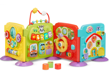 From tummy time to first steps, this activity center adapts to every stage. Explore four panels separately or connect them for sit-at, crawl-around, or all-around play. Hear music, count with the giraffe on the phone, flip the book page, drive the steering wheel, and spin the gears. It grows with baby and builds motor skills while keeping them engaged. Parents will love this.