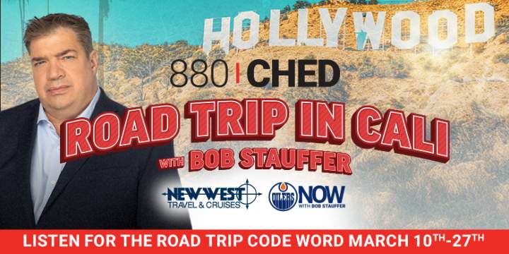 Thanks for your entry! Make sure to listen daily for the Road Trip Codewords and on March 28th to see if YOU will be heading on a Road Trip to Cali with Bob Stauffer!
