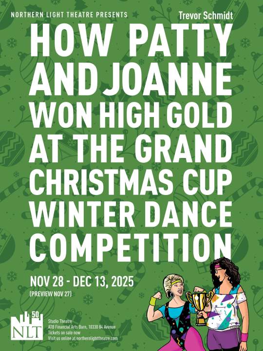 Northern Light Theatre presents How Patty & Joan Won High Gold at the Grand Christmas Cup Winter Dance CompeitionNovember 28 – December 13, 2025 November 27 (Preview) Studio Theatre Inside Fringe Theatre Adventures 10330 – 84 Ave World premiere of a comedy about a mismatched pair- two women, seemingly different in every way- who find comfort in an unexpected friendship that develops as they work toward a local amateur dance competition. Visit the...TheatreNov 28 - Dec 13