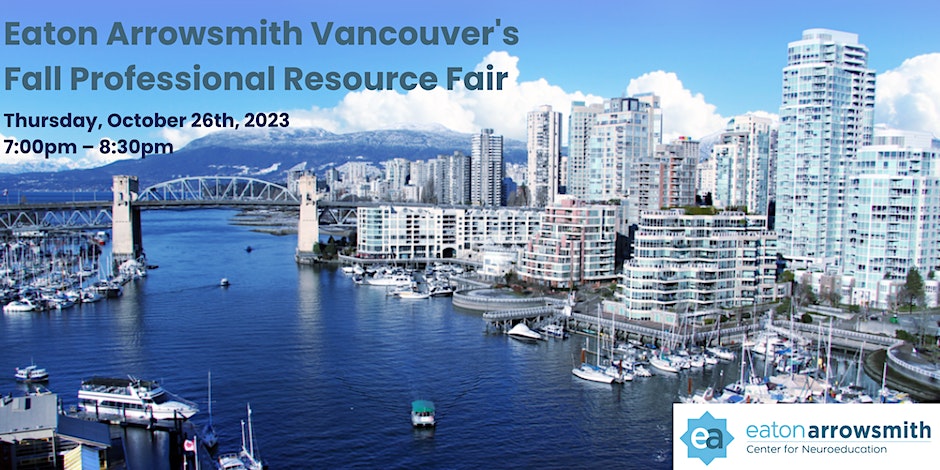 Eaton Arrowsmith Center for Neuroeducation welcomes you to join us on Thursday, October 26th, 2023, for our Fall Professional Resource Fair at our host site, This World’s Ours Centre. Come meet a variety of professional educators, clinicians, schools and health professionals to learn about their services and programs they have to offer our wonderful community. There will be a variety of different companies, organizations and schools represented at this event. There will also be opportunities to win giveaway items from select vendors with plenty of time to interact and learn about the services or programs you perhaps are looking for for yourself, your child or a friend or family member. Date: Thursday, October 26th, 2023 Time: 7:00pm – 8:30pm Location: 191 E. 10th Ave, Vancouver, BC (Hosted by This World’s Ours Centre)