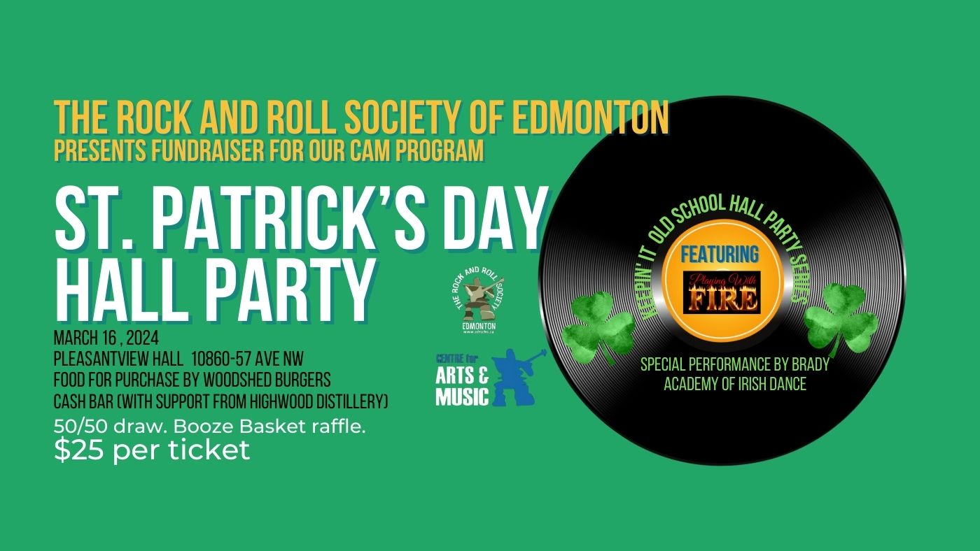 Join us on Saturday March 16, 2024 for a fun “old school” hall party in celebration of St. Patrick’s Day. You’ll dance to the amazing sounds of “Playing with Fire” as well as enjoy a performance by the Brady Academy of Irish Dance. Woodshed Burgers will have food available for purchase and there will be a cash bar (with support from Highwood Distillery). We’ll also have a Booze Basket raffle, and a 50/50 draw! So, bring some cash, bring your dancing shoes and sense of fun and lets have an amazing night as we raise funds for our CAM Program! Learn more about CAM at http://www.edrocks.ca