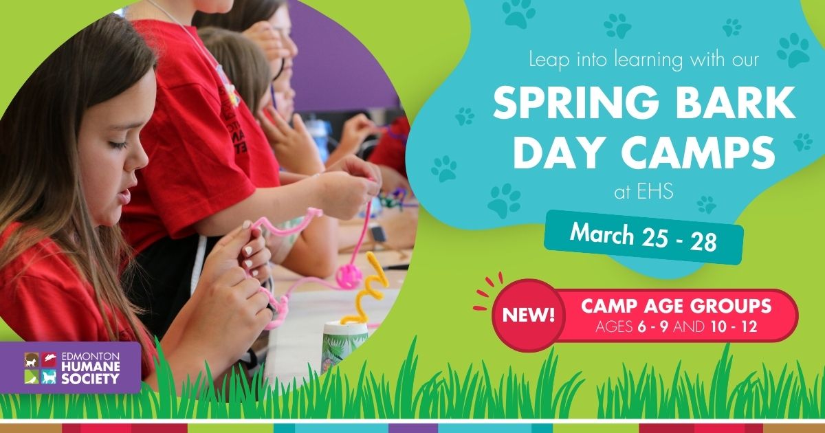 Spring Bark Day Camps are now open for booking at EHS! This March, treat your child between the ages of 6 and 12 to an enriching day of learning about animals and their welfare at the Edmonton Humane Society. With two age groups and multiple dates to choose from, your child can join their peers for a day filled with fun, crafting, and educational activities. • March 25 & 26: Day camp for youth aged 6 to 9 • March 27 & 28: Day camp for youth aged 10 to 12 To find out more and reserve your spot, please visit our website: If you have multiple children in different age groups, kindly get in touch with our education team to discuss the best option for them to ensure a wonderful experience with us.