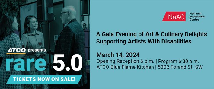 ATCO presents RARE 5.0, a night of art and culinary delights in support of artists with disabilities at the National accessArts Centre. Now in its fifth year, RARE has become one of the most elite annual arts fundraising events in Calgary. The gala evening will feature tantalizing food and wine selections paired thoughtfully with cutting-edge artistic presentations. Meet our NaAC artists in person and learn more about their work in an intimate setting, while getting to know others in the Calgary community who support the creative potential of artists with disabilities.