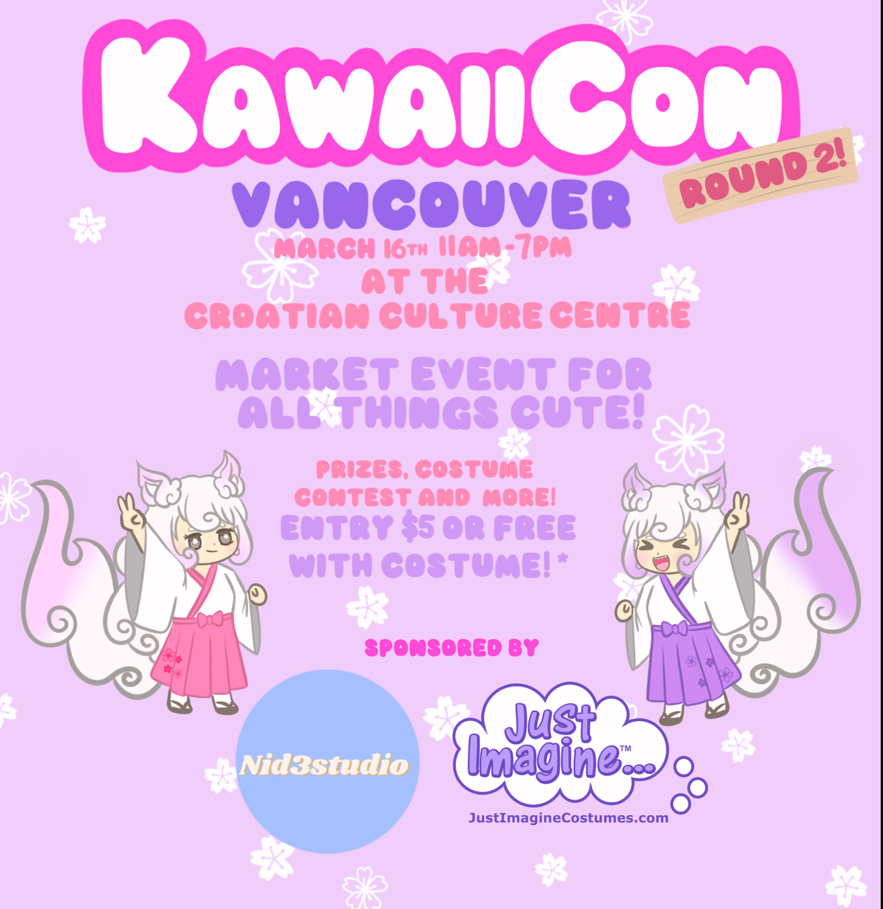 KawaiiCon is a local market and cosplay event that is open to everyone! Join us at the Croatian Centre on March 16th for a day of fun, shop local vendors, free to play arcade, costume contest with prizes, and more!