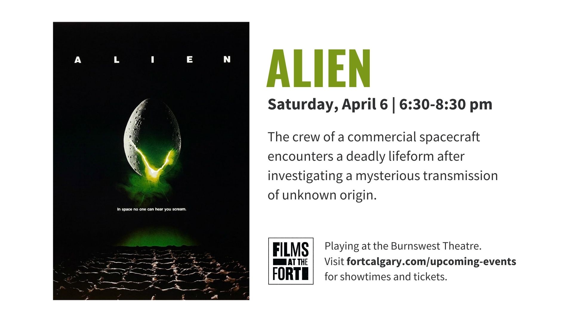 Come by the Burnswest Theatre at Fort Calgary for the cozy indie theatre atmosphere, snacks and screenings of movies made for the big screen! Tickets include a small popcorn with unlimited refills. Additional snacks and beverages will be available for purchase. Alien (R): The crew of a commercial spacecraft encounters a deadly lifeform after investigating a mysterious transmission of unknown origin.