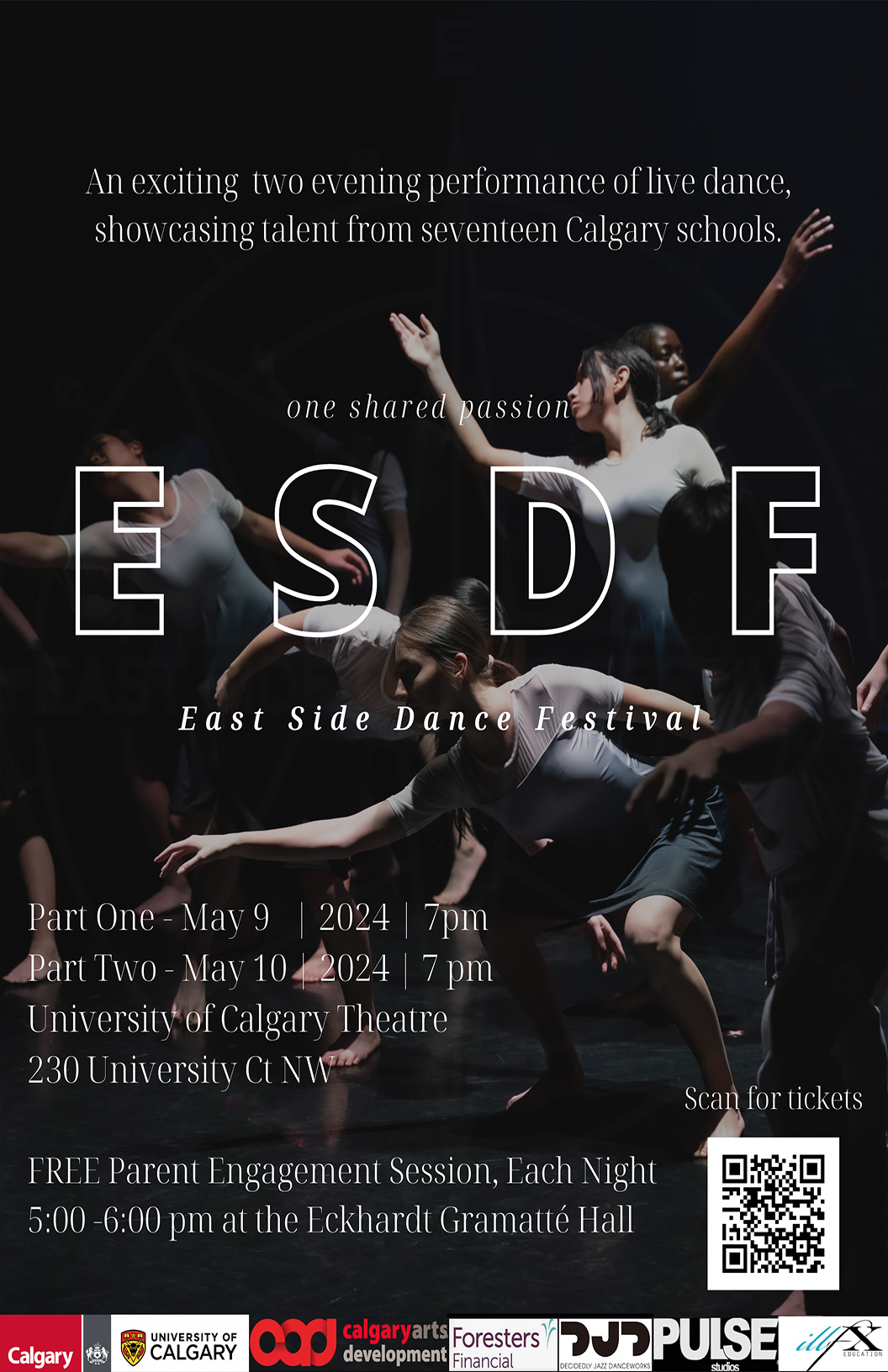 The Eastside Dance Festival Society presents an electrifying showcase of outstanding dance programs from 17 CBE and CSSD Schools at the U of C Theatre May 9th and 10th at 7pm. Over 450 dancers will perform and some will share over $100,000 in scholarships and cash prizes to support continued dance education after high school. For tickets, visit the University Theatre Events page (https://theatre-tickets.ucalgary.ca/?tx=84001) Prior to each performance on May 9th and 10th, we are holding a FREE parent engagement session at the Eckhardt Gramatté Hall in U of C’s Rozsa Centre from 5:00 pm. Esteemed local dance educators, academics, and professional artists will share their career pathways and the most recent research conducted on the benefits of dance for developing young minds and bodies. Dance education is an investment in your child’s future!