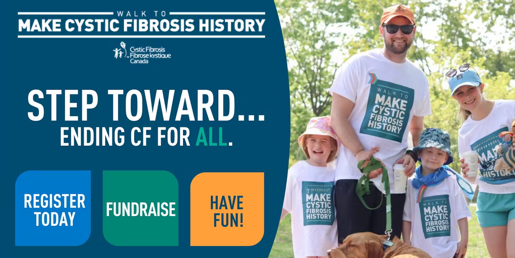 You can walk and fundraise as an individual or with your own team and, no matter how you choose to participate in the Walk To Make Cystic Fibrosis History, please know you’ll be helping in profound ways. Remember to call on your friends, family members, colleagues, and neighbours to join our amazing community of supporters!