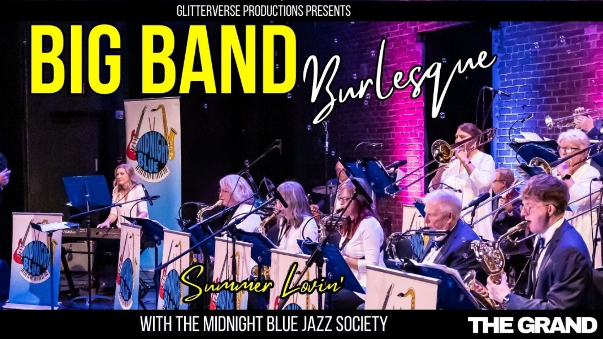 Glitterverse Productions is extremely proud to return to The GRAND with the next edition of Big Band Burlesque, Summer Lovin’ . Join us on Saturday, June 1, 2024 as we head on an adventure back to Club Obi Wan and a time when the big bands of Benny Goodman, Duke Ellington, Glen Miller and Cab Callaway ruled the airwaves. Come on a sentimental journey with the Midnight Blue Jazz Society and their 17 piece big brass band as they lead us through the decades with added flavours of swing, jazz, blues, latin, funk, classic rock and their own take on modern hits. Combine these sounds with the glitz and glamour of some of western Canada’s premier burlesque performers and vocalists bring to the stage, and you have yourself one exciting evening that is not to be missed.