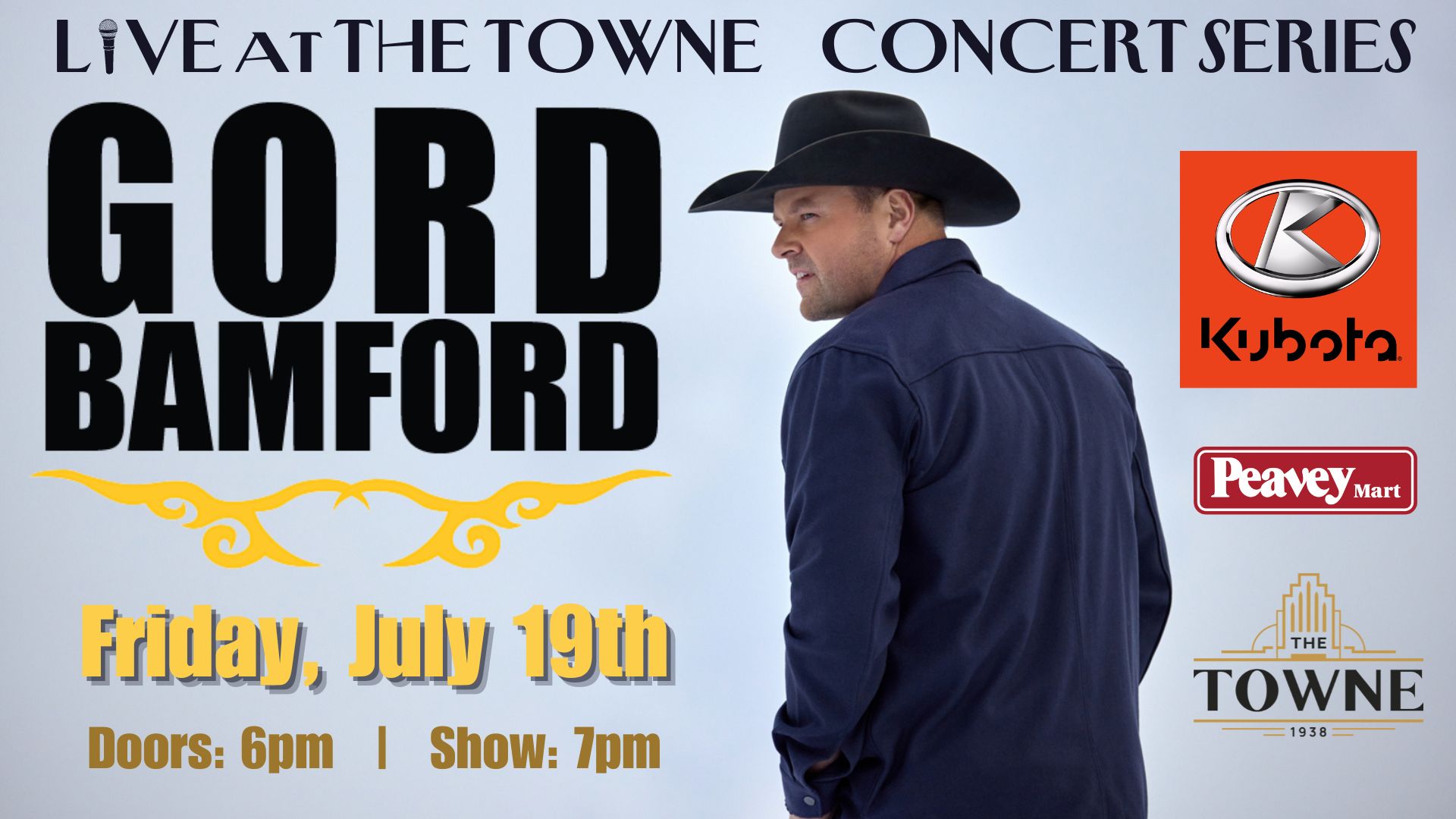 Come and join us at the newly renovated Towne Theatre for a great night of country music with Gord Bamford that will kick off our live Towne series.