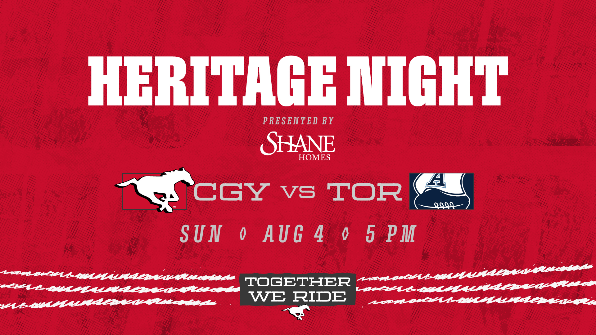 Celebrate Calgary’s rich cultural mosaic at our Heritage Night game presented by Shane Homes, on Sunday, August 4, when the Stampeders welcome the Argonauts to McMahon.