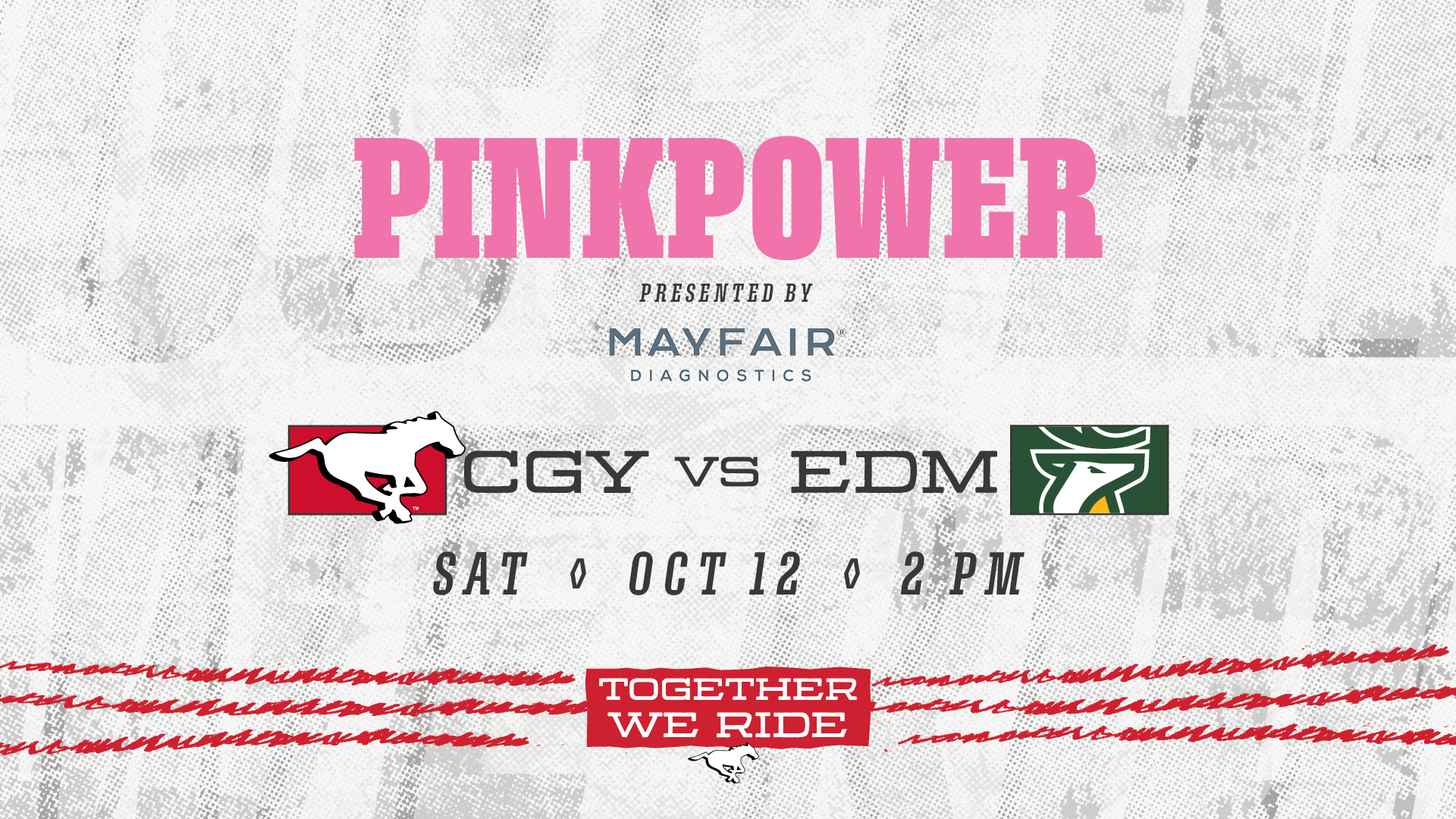 Join us on October 12, the Stampeders’ annual PinkPower event, presented by Mayfair Diagnostics, dedicated to raising awareness and funds for the fight against women’s cancers.