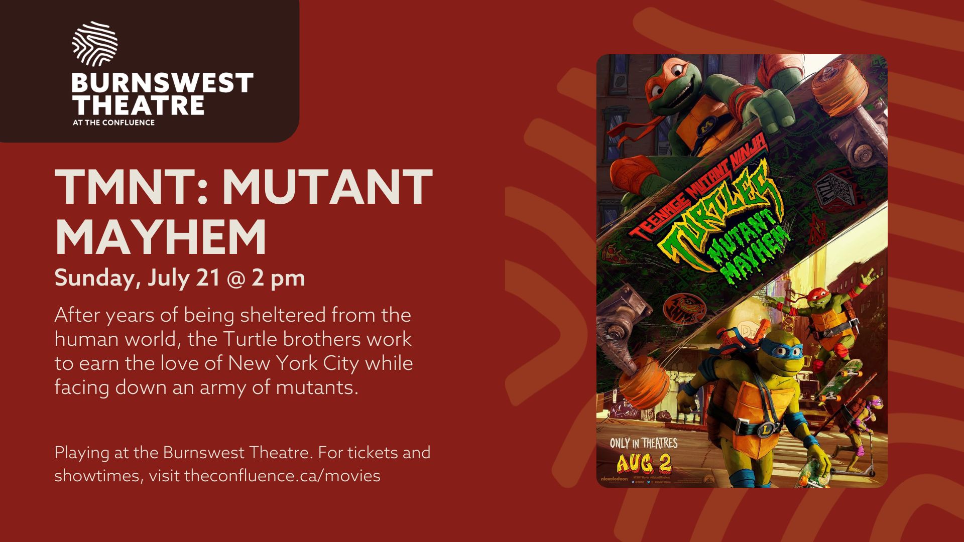 TEENAGE MUTANT NINJA TURTLES: MUTANT MAYHEM (PG) – Sunday, July 21 @ 2 pm: After years of being sheltered from the human world, the Turtle brothers work to earn the love of New York City while facing down an army of mutants. Get tickets and showtimes at http://theconfluence.ca/movies