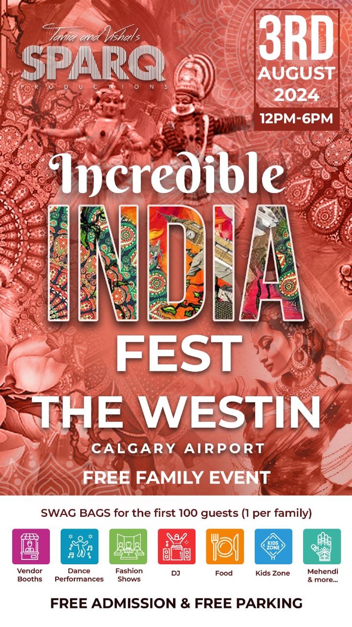 Sparq Productions is delighted to announce the 3rd Annual INCREDIBLE INDIA FEST on August 3, 2024, a celebration of the rich culture, diversity and traditions of India.