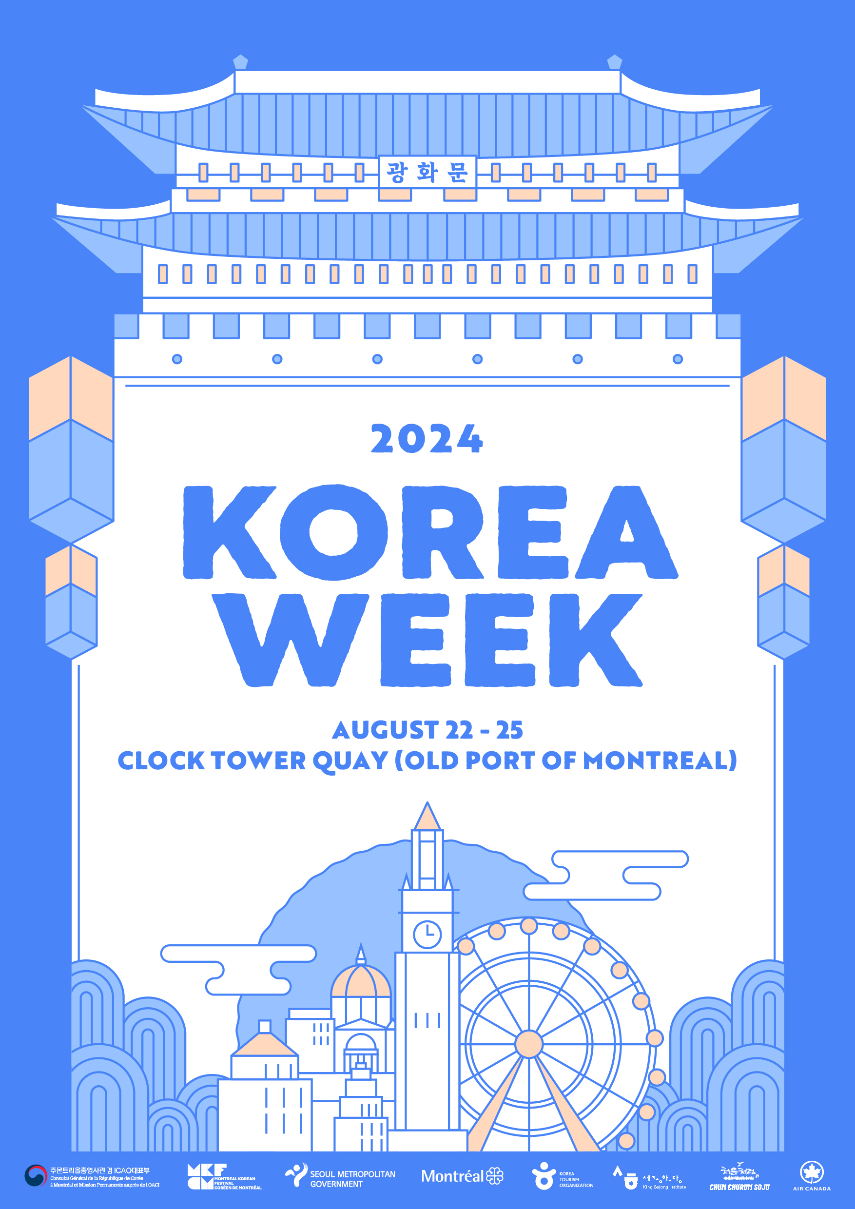 Join us from August 22 to 25, 2024, at the Quai de l’Horloge in Old Port of Montreal for a sensational celebration of Korean culture, hosted by the Consulate General of the Republic of Korea in Montreal and co-organized by MKFCM. This is a cultural festival you don’t want to miss! 📍 Quai de l’Horloge (Vieux-Port de Montréal) 1, rue Quai de l’Horloge, Montréal, QC H2L 5C1 📅 Dates & Times: Thursday, August 22 | 16:00 – 22:00 Friday, August 23 | 12:00 – 22:00 Saturday, August 24 | 12:00 – 22:00 Sunday, August 25 | 12:00 – 20:00 🎟️ Admission: Absolutely FREE! What to expect: 🍲 Delicious Food & Drinks: 30 amazing vendors offering a variety of Korean delicacies and unique experiences. 🎤 Spectacular Performances: B-boy, Samulnori, K-pop cover dance groups, K-pop cover songs, DJ Night 🌸 Exciting Programs: Korean food workshop(kimchi, kimbap), Montreal Korean food guide, Stamp challenge, Round-trip flight ticket raffle to Korea, Calligraphy, Traditional game, Sticker photo, Random play dance, Korea tourism promotion, Souvenir giveaways, etc. ⭐️ Why You Should Come: This festival is your gateway to exploring the rich culture of Korea right in the heart of Montreal. From mouth-watering food to captivating performances and interactive experiences, there’s something for everyone to enjoy. Bring your friends and family, and immerse yourself in this vibrant cultural celebration! Mark your calendars and get ready for four days of fun, food, and unforgettable memories at La Semaine de la Corée 2024! We can’t wait to see you there!
