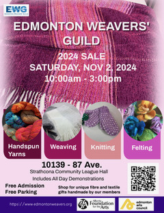 Our local Edmonton Weavers Guild invites the public to our sale of one of a kind, hand made items such as scarves, tea towels, blankets, ornaments, and more
