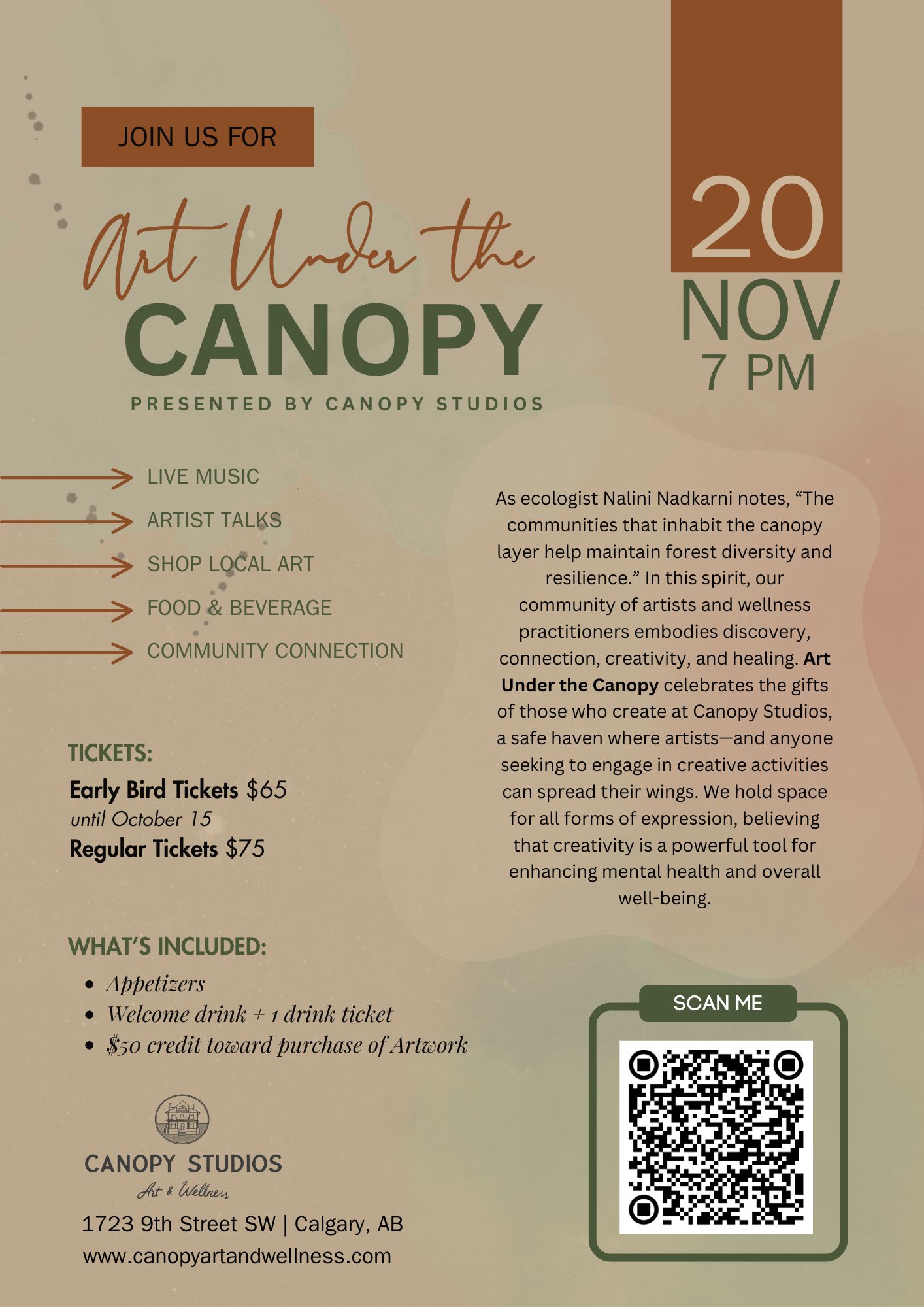 - info@canopyartandwellness.com 403-804-2469 (Canopy Studios)