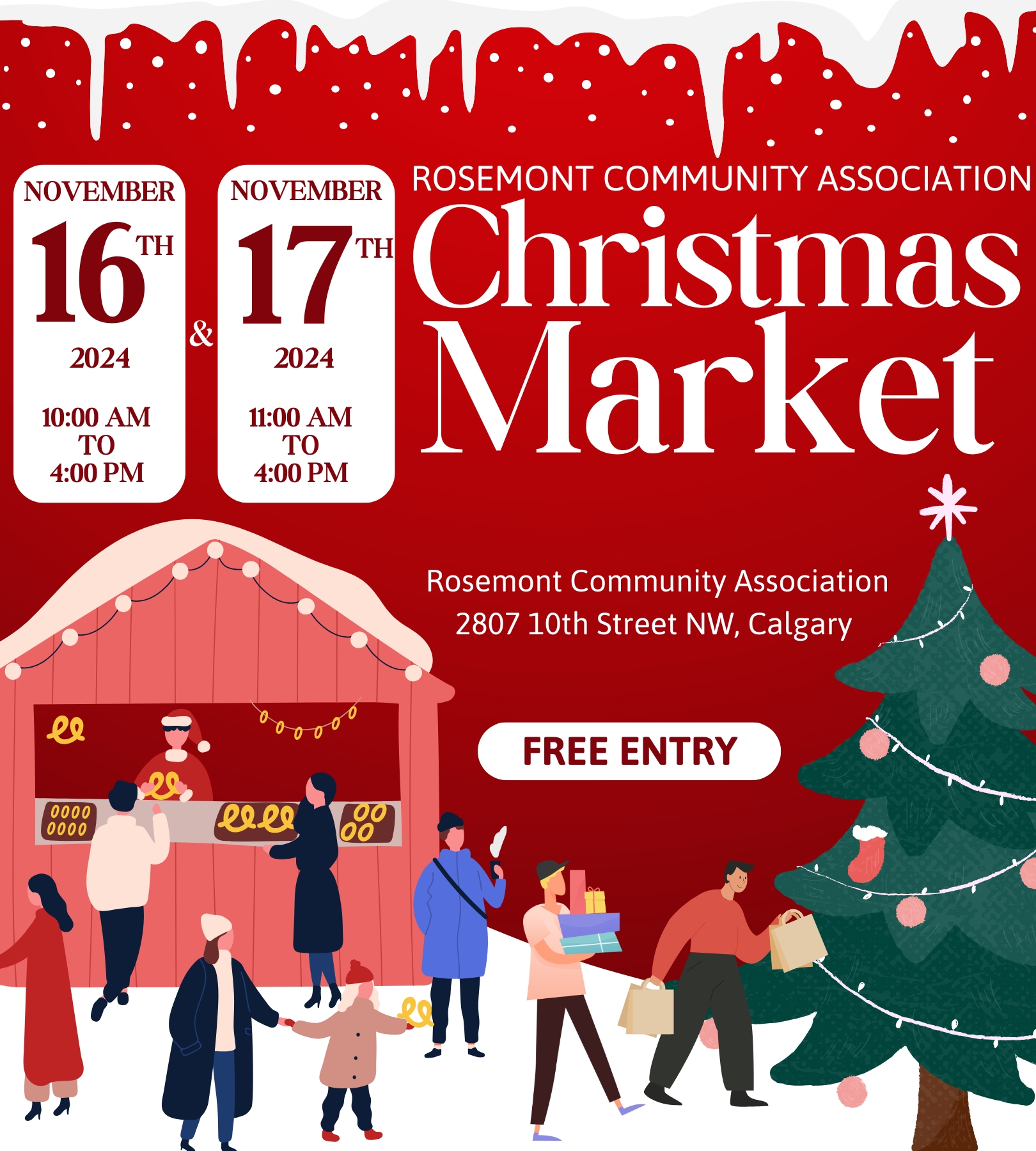 Rosemont Community Associations annual Christmas Market is running for two days this year. Join us SATURDAY NOVEMBER 16 from 10 am-4 pm or SUNDAY NOVEMBER 17th from 11 am-4 pm to get a head start on your holiday shopping from some great vendors. The weather is supposed to be beautiful so take advantage and stroll down to the Rosemont Community Hall. It’s a great opportunity to pick up some gifts for those you love, and maybe a little something for yourself as well! November 16th: 10am to 4pm November 17th: 11am to 4pm Rosemont Community Association: 2807 10th Street NW, Calgary Free Admission http://www.rosemontyyc.com