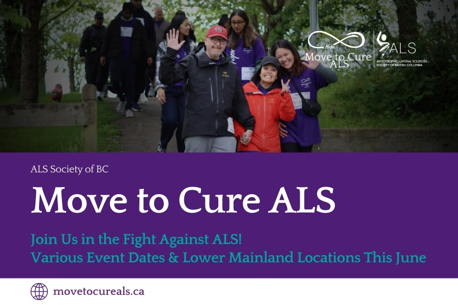 Join the ALS Society of BC in the fight against ALS this June by participating in the Move to Cure ALS! Your steps will help support patients, their families and caregivers in BC and Yukon and lead us to a cure through ALS BC PROJECT HOPE. 🌐 Please visit http://www.movetocureals.ca to learn more.