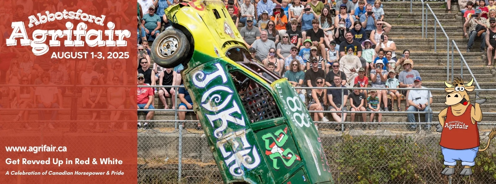 Get Revved Up with Abbotsford Agrifair – August 1-3! Featuring Monster Spectacular – Canada’s Biggest Monster Truck Tour with limited seating two shows per day August 1st and 2nd. Mainstage Concerts including Tom Lavin & the Legendary Powder Blues, Faber Drive and Tributes through the Decades including tributes to Elvis, Niel Young, ZZ Top and the Tragically Hip. Don’t Miss the Demolition Derby, Pig Races, Country Horse Classic, Antique Farm Machinery Displays and Demonstrations, and MUCH More included with Gate Admission. Abbotsford Agrifair – Celebrating 116 years – August 1st-3rd. For more info about this year’s exciting line-up, visit http://www.Agrifair.ca
