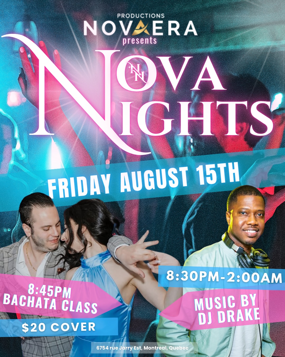 Nova Nights is happening Friday, August 15 from 8:30 p.m. to 2 a.m.—a high-energy Latin dance event you don’t want to miss. Brush up on your bachata with a class led by Revolution Québec finalists and six-time Salsa World Champions Adriano Ieropoli and Samantha Scali. The class starts at 8:45 p.m. and is open to all levels. Enjoy live performances by Novaera’s dance teams, a fun photobooth, and Latin party vibes all night long with DJ Drake. No alcohol is sold on-site, but feel free to BYOB. Tickets are $18 online or $20 cash at the door.
