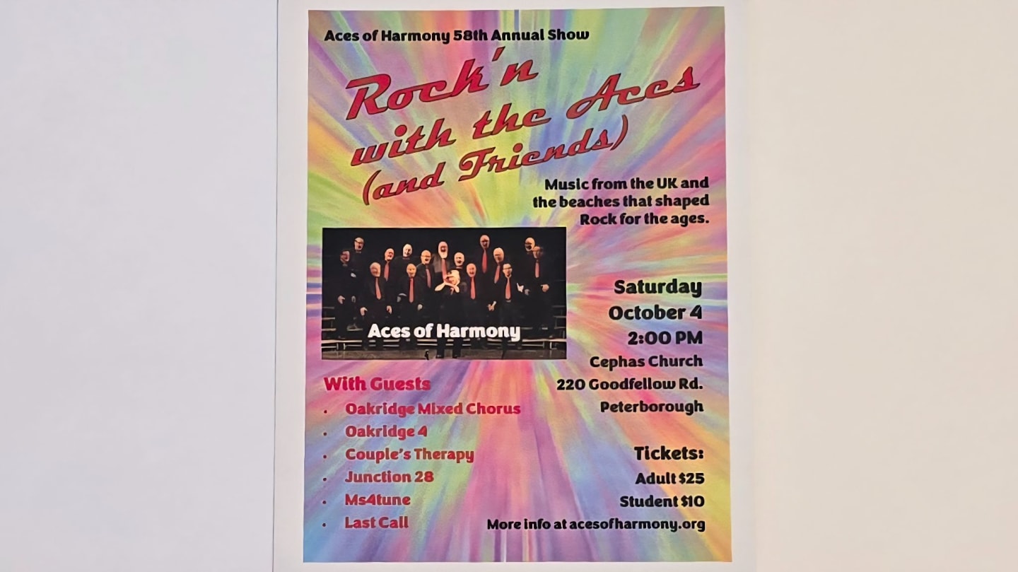 The Aces of Harmony 58th Annual Fall Show is happening at Cephas Church (220 Goodfellow Road) on Saturday, October 4 at 2pm.
