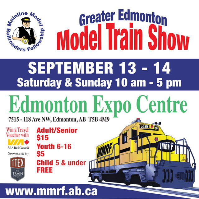 The Greater Edmonton Model Train Show is back for 2025 at the Edmonton EXPO Centre! This family-friendly event is a must-see for train lovers of all ages. Highlights: Operating layouts and static displays from some of the best model railroad clubs in Canada Model trains and interactive exhibits for all ages How-to clinics & live demonstrations by experts LEGO play area for the littles! Dealer booths with all sorts of train-related wares You could win a VIA Rail travel voucher! Whether you’re a lifelong enthusiast or just curious, come experience the creativity, craftsmanship, and community that make this one of Canada’s premier model train events. Tickets: Adult | $15 Youth | $5 (ages 6 – 16) Under 6 | FREE Please note: payment for admission is made on day of event at event location. RIDE THE TRAIN TO THE TRAIN SHOW! – ride the ETS Light Rail Capital Line to COLISEUM STATION!