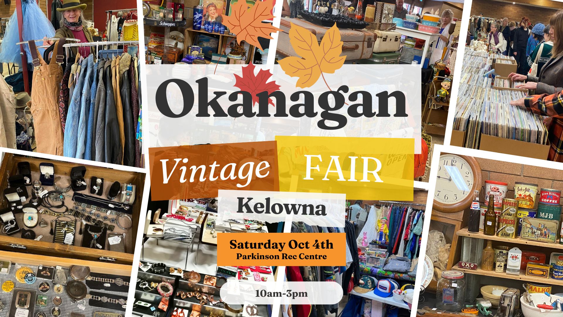 The Okanagan Vintage Fair is returning to Kelowna on Saturday October 4th at the Parkinson Recreation Centre. SHOP OVER 40 TABLES FULL OF VINTAGE TREASURE FROM LOCAL VENDORS… collectibles, antiques, apparel, accessories, decor, small furniture, art, comics, vinyl, toys, books, games, musical instruments, cameras, electronics, jewelry, primitives, ephemera, oddities, and vintage-inspired crafts! Bop to vintage beats while you shop! Find that one-of-a-kind vintage treasure! You never know what you will find! They just don’t make them like they used to 😉 SATURDAY OCTOBER 4TH, 2025 Parkinson Recreation Centre 1800 Parkinson Way MARKET HOURS: 10am-3pm ADMISSION: $3 (kids 12 and under are free) We will also be in VERNON! Sunday October 5th 11-4pm Coldstream Community Hall 9909 Kalamalka Road For information on becoming a VENDOR please email us! okanaganvintagefair@gmail.com Hope to see you there!