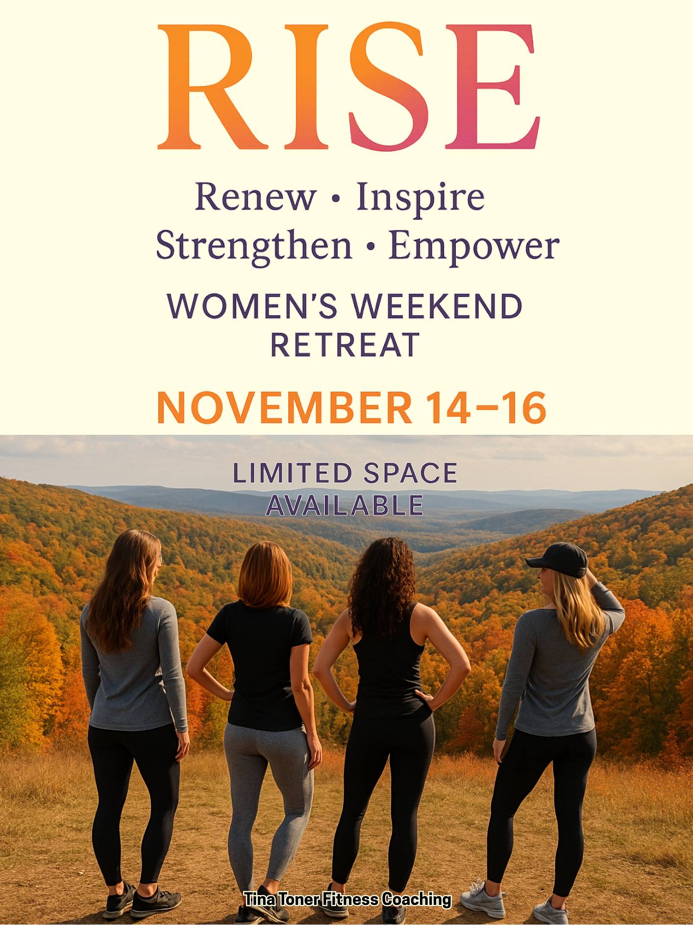 Ladies 40 +, this is the weekend you’ve been waiting for! Our very first RISE Women’s Weekend Retreat is happening November 14–16, 2025 in beautiful Sutton, Quebec, just 1 hour from Montreal. Spots are limited and this retreat will sell out! Here’s what’s waiting for you: – Your own double occupancy condo suite – Daily catered breakfast – A warm Welcome Ceremony to set your intentions – A nature hike to reconnect with the outdoors – Fun, engaging exercise and activities throughout the weekend And it doesn’t stop there. You’ll learn from: Cynthia, Naturopath Extraordinaire: Discover practical strategies to balance hormones and boost vitality at 40+ Chantal, from the Body Mechanics – Renowned Athletic Therapist: Release years of tension, unlock your body’s natural strength, and feel energized again Rachel, Zumba Inspiration: Learn how one bold decision can transform your life showing you it’s never too late and you’re never too old to reinvent yourself Tina Toner: With 25+ years helping women transform body, mind, and soul, will guide you through morning strength sessions and mindset tools that have improved thousands of lives Also, a Vision Board Party! A creative, high-energy session to dream big, set intentions, and map out practical steps for 2026. Care to join us? spaces are limited!