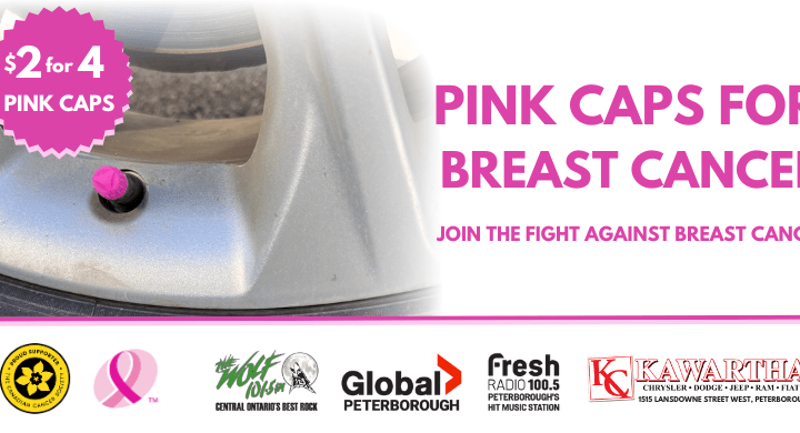 101.5 The Wolf, Global Peterborough, 100.5 Fresh Radio and Kawartha Chrysler are teaming up for Peterborough’s annual Pink Caps For Cancer fundraising campaign in support of the Canadian Cancer Society.