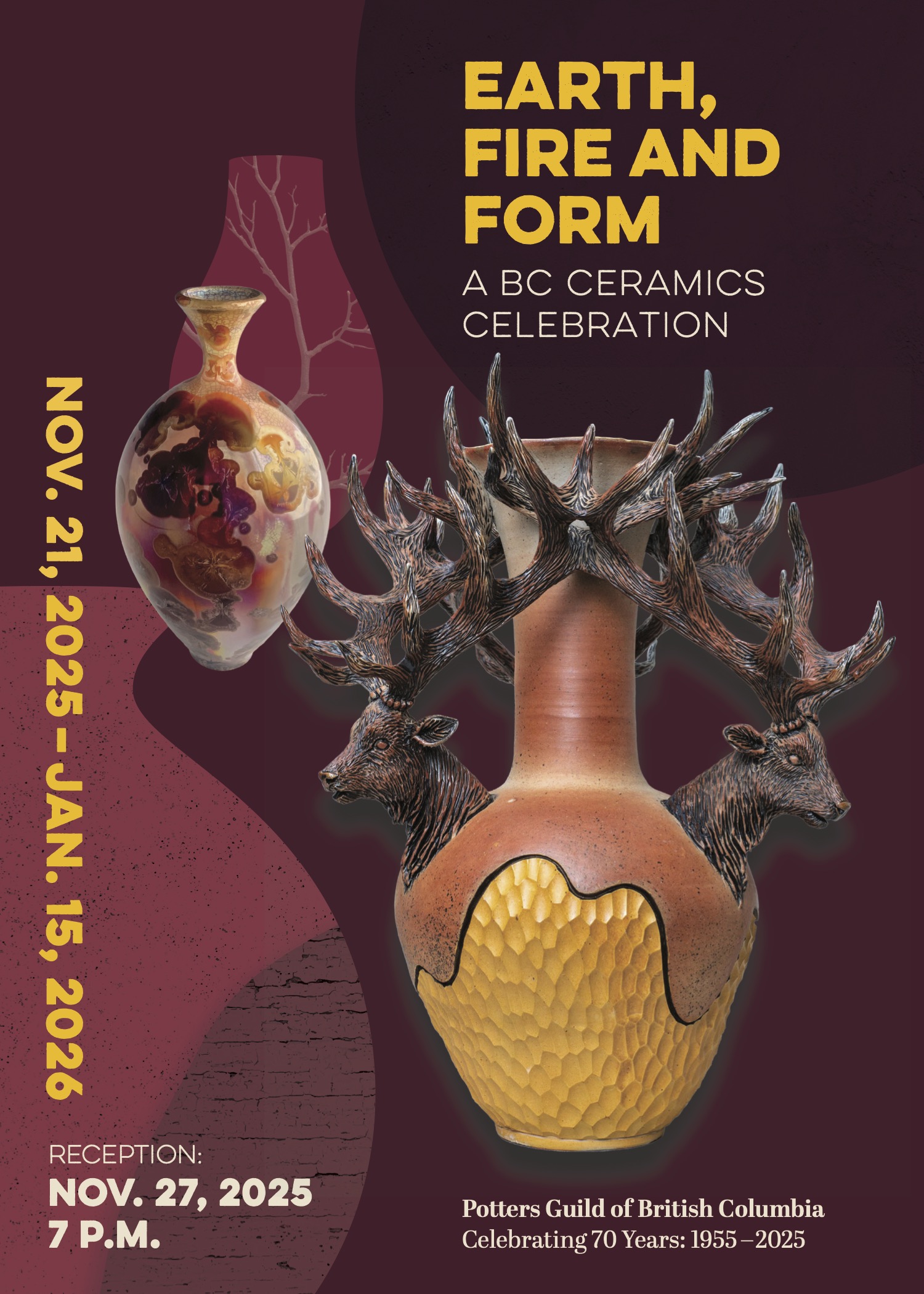 The Potters Guild of BC is celebrating its 70th anniversary with a group exhibition encompassing the work of 58 artists. The show was curated by Debra Sloan, Ying-Yueh Chuang, and Italian Cultural Centre Director & Curator Angela Clarke. OPENING RECEPTION: Thursday, November 27, 7-9pm DETAILS: Location: Italian Cultural Centre, Il Museo | 3075 Slocan St, Vancouver BC Exhibition dates: Friday 11/21/25 – Thursday 1/15/26 GALLERY HOURS: Tuesday to Friday, 10am – 6pm Saturday: 10am – 4pm Sundays (11/23, 11/30, 12/07, 12/14, 12/21): 10am-4pm ARTIST TALKS: Saturdays (11/29, 12/6, 12/13, 12/20): 2pm-3pm All are welcome!