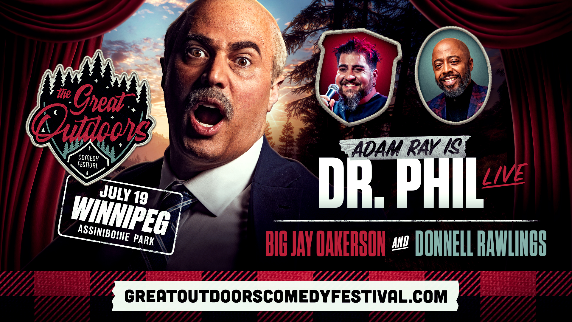 Adam Ray is Dr. Phil Live, Sunday afternoon at this year’s Great Outdoors Comedy Festival, July 19th in Assiniboine Park. He’ll be joined by Big Jay Oakerson and Donnell Rawlings.