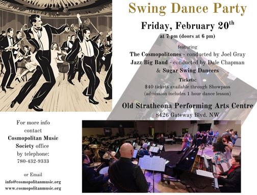 Join us for a Swing Dance Party featuring the Cosmopolitones, Jazz Big Band, and the Sugar Swing Dancers. Cosmopolitones conducted by Joel Gray Jazz Big Band conducted by Dale Chapman and showcasing The Sugar Swing Dancers