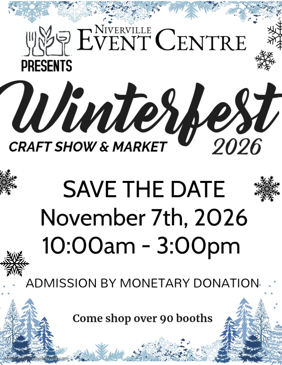 Winterfest 2026 -a Craft Show & Market Get ready to immerse yourself in a world of creativity, craftsmanship, and community! β€ ποΈ Date: Saturday, November 7th, 2026 – NEW DATE π Time: 10am – 3pm π’ Location: Niverville Event Centre – located in the Niverville Heritage Centre Entrance 100C Heritage Trail or the Coop Pharmacy Entrance (2nd Ave Entrance) What can you expect? Over -90- talented artisans & vendors showcasing their unique creations and home based business’s selling everything from home baked goods to home dΓ©cor to everything in between. Admission: By Monetary Donation
