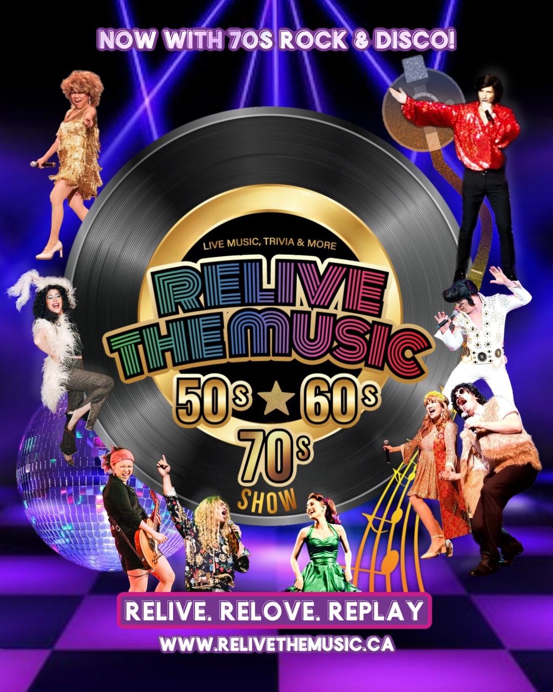 Presented by S. A. M. Productions Ltd. Back by popular demand — Relive the Music 50s & 60s Show is back after 158 standing ovations in a row across Canada with a new twist. We are keeping the biggest hits from the 50s & 60s, plus adding 70s Disco Mania with new costumes and great entertainment like usual. Medleys from the disco era — to name a few — The Village People, Earth, Wind & Fire, Bee Gees, ABBA, Gloria Gaynor, Chic, Tramps, KC & the Sunshine Band, Sister Sledge, and more. World champion, as seen twice on Oprah and The Ellen Show, Luisa Marshall will be performing all her magic alongside the other talented singers and the great band. Don’t miss this show.