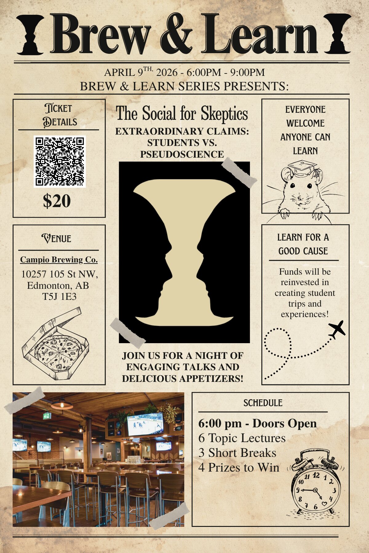 Brew & Learn presents: The Social for Skeptics Curious minds, this one’s for you. This is a fundraising event hosted by MacEwan University. Join us at Campio Brewing Co. for an evening where big questions meet good beer. Our first Brew & Learn event dives into misinformation and pseudoscience—through a series of short, engaging talks designed to challenge what you think you know (in the best way). Put your skepticism to the test with interactive moments and win prizes, all while enjoying a night out. Every ticket for this fundraising event helps support student learning experiences so you’re doing good while having a great night out.