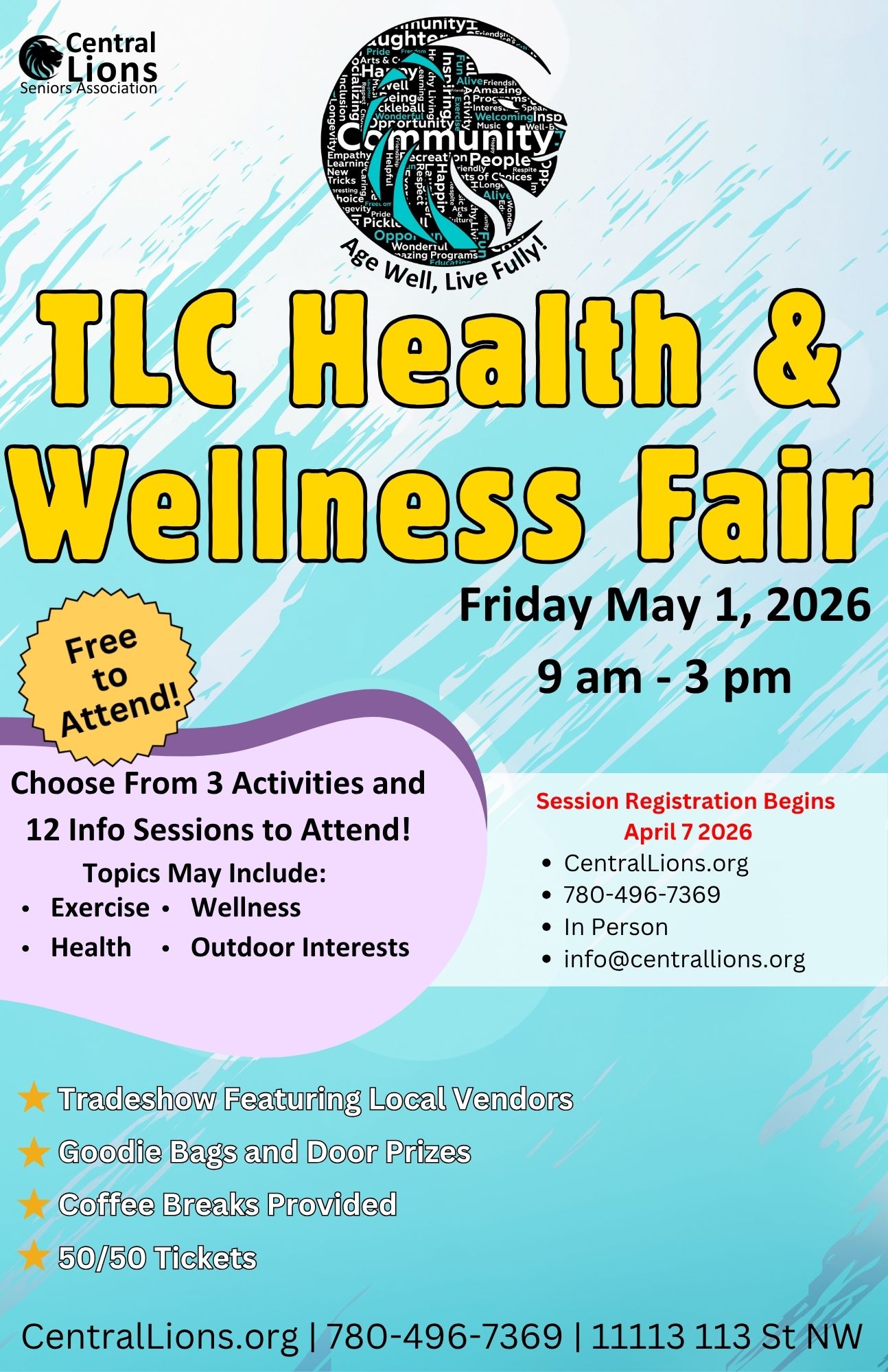 Join us for a day of fun, inspiration, and education on all things health and wellness! Enjoy informative sessions from engaging experts, our tradeshow featuring local vendors,, and draws for door prizes! Don’t miss out on this incredible opportunity to revitalize your mind, body, and soul. Mark your calendars now for the TLC Health and Wellness Fair! 11113 113 St NW Edmonton, AB