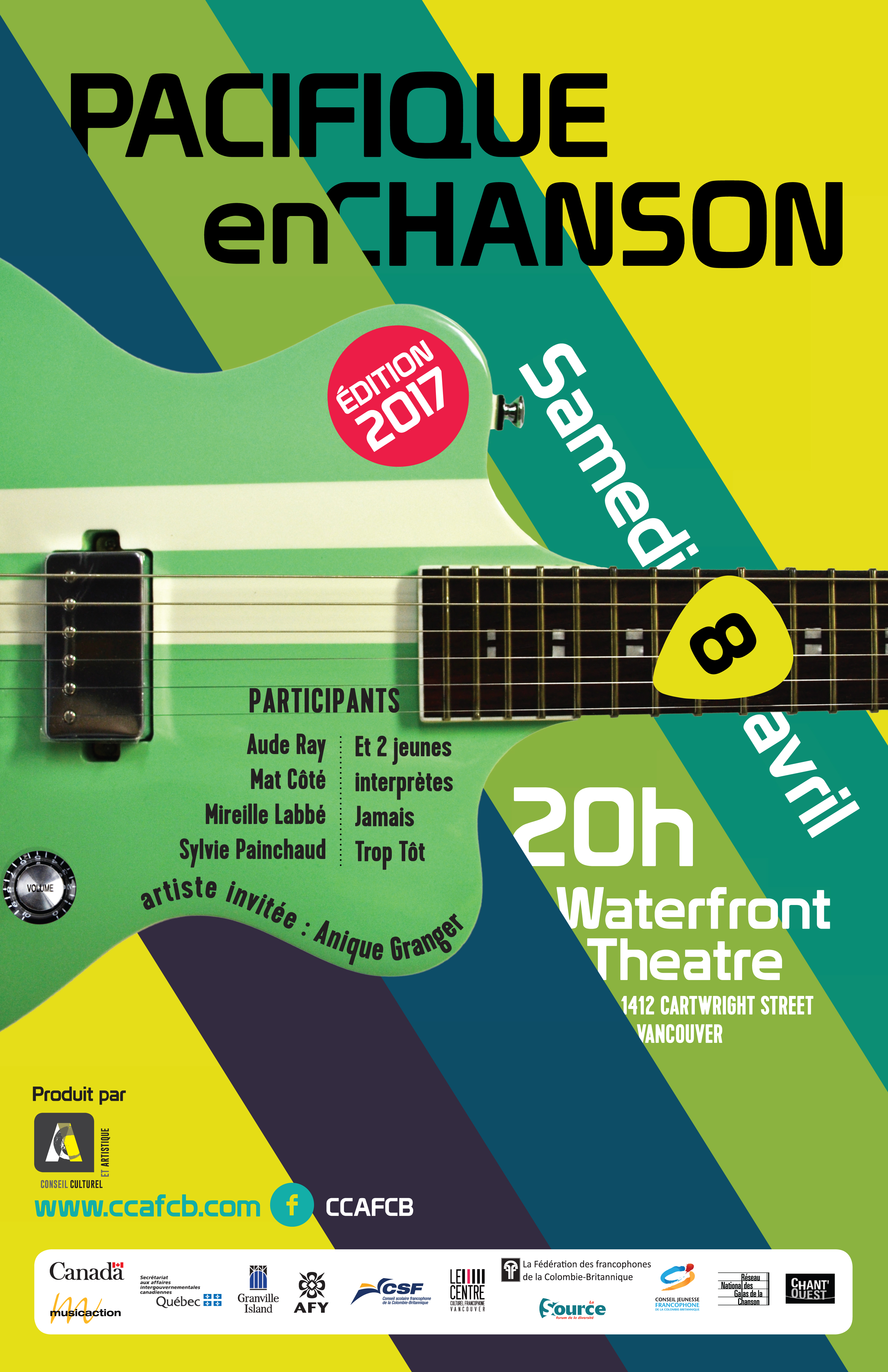 Because you love pop, rock and folk. Because you love concerts and you find French glamorous. And because you really enjoy chilling out and being at the centre of hot things like meeting the new talents… This is your event ! Book your tickets for Pacifique en chanson, the unique francophone competition-show happening in western Canada ! Featuring Anique Granger Aude Ray Mat Coté Mireille Labbé Sylvie Painchaud Book your tickets now for a one-of-a-kind event !